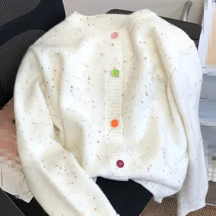 TEMU Damski Sweter-Płaszcz w Pastelowe Wielokolorowy Kropki - Miękka Kurtka Zimowa z Okrągłą Szyją i Guzikami, Przytulny Luźno Dopasowany sweter na