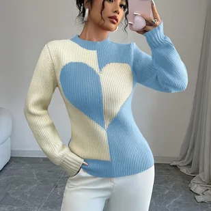 TEMU Sweter damski z półgolfem i serduszkiem na jesień-zimę