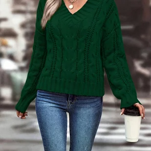 TEMU Damski Sweter Z Dzianiny Z Dekoltem W Kształcie Litery V, 100% Akryl, Jednokolorowy, Sezon Wiosna/jesień, Tkanina Z Dzianiny 320g/m², Sweter Z