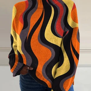 TEMU Sweter Damski Zimowy - Miękka Imitacja Polarowa Luźna Golfówka w Paski, Pranie Maszynowe, Casualowa Moda na Jesień i Zimę, Stylowa Odzież