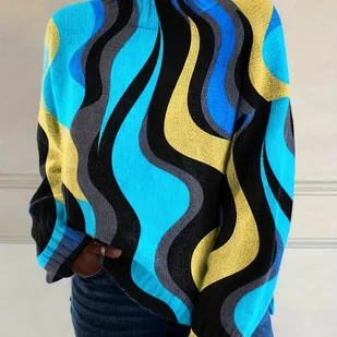 TEMU stylowa i wszechstronna bluzka damska z długim rękawem i wysokim dekoltem na jesień i zimę, z modnymi cyfrowymi nadrukami i szykownym designem.