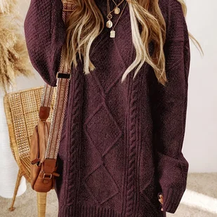 TEMU Jesienno-Zimowy Sweter Vintage z Skrętem dla Kobiet, Średniej Długości Pulower, Gruby Luźny Sweter, Bohemska Modna Bluzka