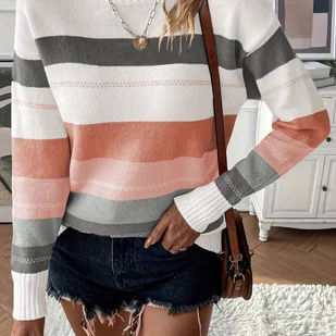TEMU Długa bluzka damska z kolorowymi paskami patchwork, luźny sweter na jesień i zimę.