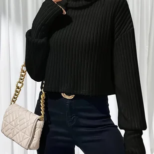 TEMU Elegancka damska bluzka z długim rękawem i wysokim dekoltem - Jednolity , prążkowana tekstura, swobodny i elegancki styl, idealna na jesień i