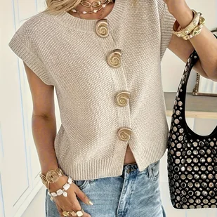 TEMU Elegancka Miękka Bluzka na Wiosnę/Jesień – Sweter z Okrągłym Dekoltem o Średniej Elastyczności, Jednokolorowa, Casual i Półformalna, Bluzki do
