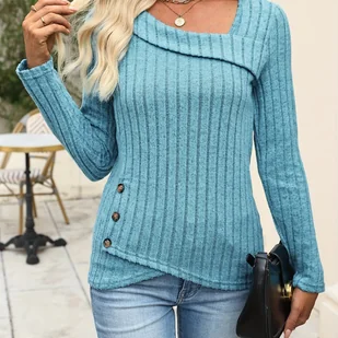 TEMU Damska letnia i jesienna prążkowana bluzka typu crossover, elegancki sweter z asymetrycznym dekoltem.