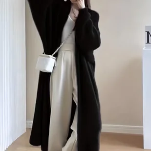 TEMU Elegancki długi kardigan damski - Szykowny sweter z otwartą przodową klatką na jesień/zimę, luźny płaszcz z długim rękawem w stylu marynarki, na