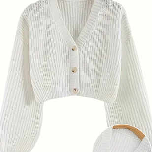 TEMU Elegancki damski kardigan z obniżonymi ramionami - miękki, nierozciągliwy sweter zapinany na guziki, idealny do warstwowania jesienią i zimą, z