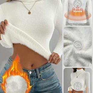 TEMU Elegancki damski sweter z długim rękawem i wysokim dekoltem - Gruby, ciepły zimowy pulower, miękki róż, regularny krój w linii H, przytulny