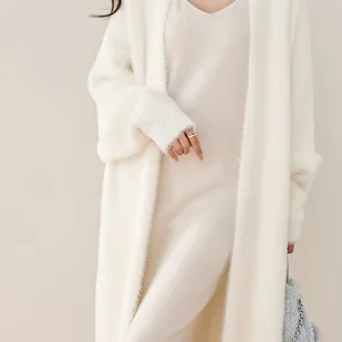 TEMU Elegancki długi kardigan damski - Szykowny sweter z dekoltem w serek, miękki, zwiewny sweter długi na wiosnę/jesień, do biura, na imprezę, na co