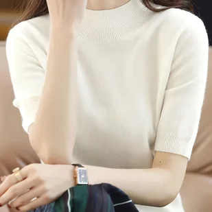 TEMU Elegancki dzianinowy top z półrękawami, 45.3" x 21.3", jednokolorowy, z detalem w panewkach, okrągły dekolt, półrękaw, uniwersalny w każdą porę