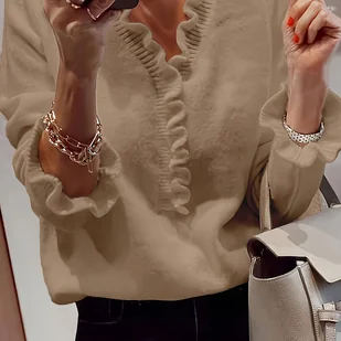 TEMU Elegancki, gładki sweter z dekoltem w serek i długim rękawem, z falbankami, z kolekcji The Tenggongchi.