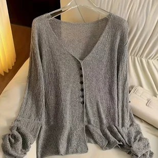 TEMU Elegancki i lekki kardigan z dekoltem w serek - przezroczysty letni szal z długim rękawem, odpowiedni na wiosnę//jesień, charakteryzujący się