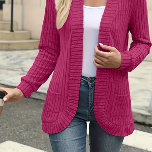 TEMU Elegancki Kardigan Damski z Guzikami z Przodu - Średnio Elastyczny, Długi Rękaw z Detalem Plisowania, Jednokolorowy, Pranie w Praniu Maszynowym,