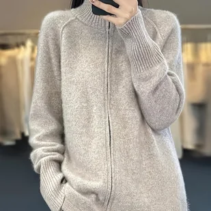 TEMU Elegancki Kardigan Damski z Zamkiem Błyskawicznym i Okrągłym Dekoltem