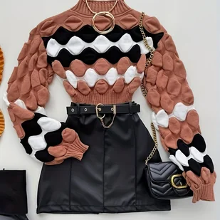 TEMU Elegancki, miękki sweter damski - bluzka z długim rękawem i okrągłym dekoltem w czerwono-białe paski, miękki, ciepły sweter zimowy na co dzień i