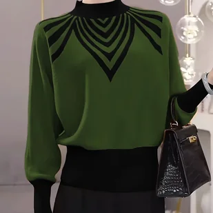 TEMU Elegancki sweter damski w blokach kolorów z wysokim dekoltem - Długi rękaw, luźny krój, rękawy typu "batwing", kolekcja jesień/, pomarańczowy,