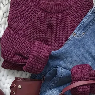 TEMU Elegancki sweter z długim rękawem w rękawach lantern | Wygodny i miękki materiał, jednolity , bez ramiączek, styl casual na jesień i zimę,