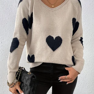 TEMU Nowość na Wiosnę/Jesień/Zimę – Modny, Elegancki i Uniwersalny Sweter z Okrągłym Dekoltem i Długim Rękawem, Sweter z Motywem , Kolorowy Sweter na