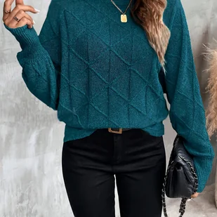 TEMU Elegancki Sweter Damski w Głębokiej Zieleni – Okrągły Dekolt, Długi Rękaw, Jednokolorowa Bluzka, Średnio Elastyczny i Wygodny Sweter na Jesień i