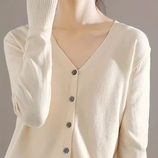 TEMU Jednokolorowy Miękki Kardigan z Dekoltem w Serek - Prosty, Elegancki i Uniwersalny Top Damski