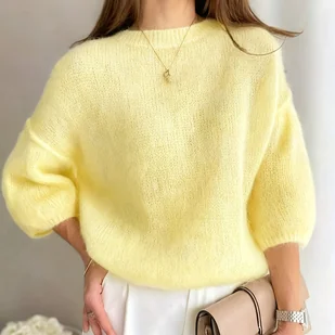 TEMU Jednokolorowy Minimalistyczny Sweter z Siedmiu Rękawów, Luźny Okrągły Dekolt, Miękki Pulower Damski