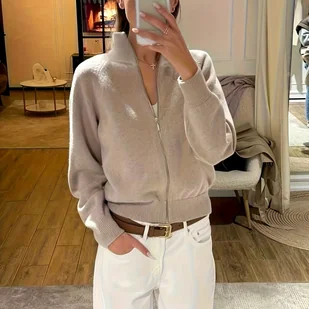 TEMU Jesień/ Casualowa Kardiganowa Kurtka Zamek Damski Sweter Jednokolorowy