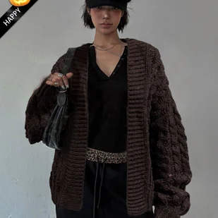 TEMU Jesień Jednokolorowy Retro Leniwy Casual Modny Wyszczuplający Styl Old Money Latarnia Świąteczny Halloween Długi Rękaw Gruby Dzianinowy Sweter
