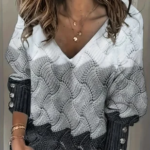 TEMU Damski Miękki Różowy Sweter z Dekoltem V - Przytulny Luźny Krój, Pulower z Długim Rękawem, Casualowy Sweter Zimowy na Jesień i Zimę, na Co Dzień