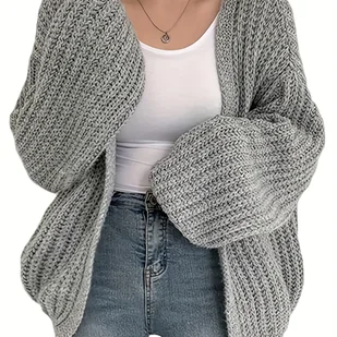 TEMU Kardigan damski casualowy z dekoltem w serek, 100% akryl gruba dzianina, jednolity luźny krój, dzianina balonowa na każdą porę roku, 56g/m² -