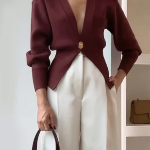 TEMU Kardigan Damski z Dekoltem w Serek - Miękka Sweterowa Kurtka na Guziki, Elegancka Odzież do Biura i Imprezy w Kolorach