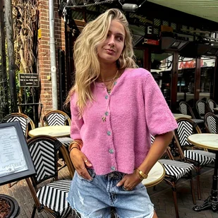 TEMU Kardigan Damski Wiosna/, Casual Jednokolorowy, Okrągły Dekolt, Krótki Rękaw, Zapięcie na Guziki z Przodu