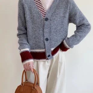 TEMU Kardigan Damski z Dekoltem w Serek - Miękka Sweterowa Kurtka na Guziki, Elegancka Odzież do Biura i Imprezy w Kolorach