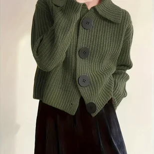 TEMU jesienno-zimowa kolekcja popularnych, swobodnych i prostych, uniwersalnych swetrów kardiganowych z długim rękawem, dużymi guzikami i klapami dla