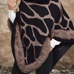 TEMU Kardigan Damski z Wygodnym Podszyciem Polarowym - Stylowy Wzór Geometryczny, Kolorowe B Brązu i Beżu, 70% Poliester + 30% Elastan, Luźne