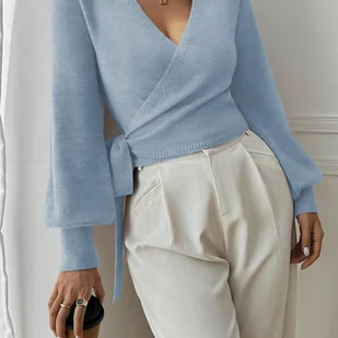TEMU Elegancki damski kardigan sznurowany - Gruby, miękki sweter z zapięciem na wiązanie z przodu, szykowna odzież wierzchnia od biura na imprezę na