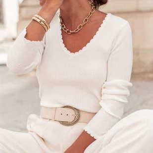 TEMU Kobiecy Seksowny Sweter z Dekoltem w Serek - DナVgi Rト冖aw, Elegancka Bluzka do Warstwowania na Jesieナ�/Zimト�, Biuro, Impreza, Codzienne Stroje -