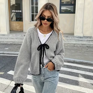 TEMU Modny Sweter Damski w Jednolitym Kolorze z Wiązaniem i Motywem Tie-Dye z Kokardką