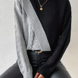 TEMU Modny Sweter z Półgolfem w Kolorowe Bloki dla Kobiet