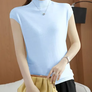 TEMU Nowy, stylowy letni top damski, wykonany z lekkiej dzianiny z półgolfem i krótkimi rękawami.