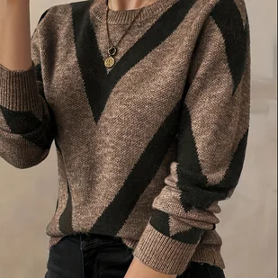 TEMU Sweter Damski - Brązowy/Czarny/Szary/Biały/Beżowy - Okrągły Dekolt, Sweter na Jesień/Zimę - Codzienny i Formalny Styl, Sweter dla Kobiet,