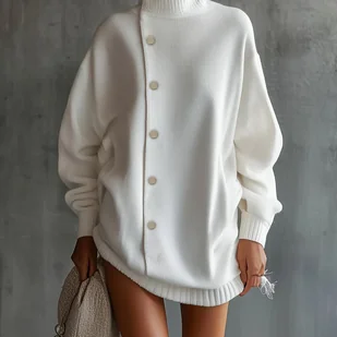 TEMU Sweter damski jednokolorowy, wysoki , luźny krój, wiosenna bluzka, wygodna i modna uliczna elegancja, codzienna odzież damska, stylizacja na
