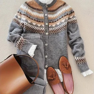 TEMU Sweter Damski - Miękka Kardigan z Długim Rękawem i Guzikami, Beż/Szary/Biały/Czarny/Brązowy, Eleganckie Stroje od Biura do Codziennego Użytku na