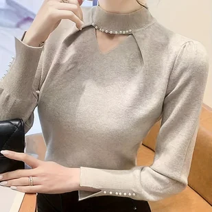 TEMU Damska Miękka Bluzka z Kołnierzykiem Stojącym i Długim Rękawem – Ciepła Koszulka Bazowa na Zimę, Jednokolorowa Warstwa Biurowa, Przytulny Sweter