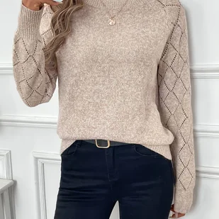 TEMU Sweter damski z długim rękawem w kratkę rombikową - jednokolorowy, rozciągliwy pulower na jesień i zimę, wygodny i stylowy element warstwowania,