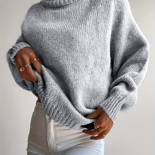 TEMU Sweter Damski z Wysokim Kołnierzem - Miękki i Ciepły, Możliwość Prania w Pralce, Jednolity , Moda Jesienno-Zimowa, Wygodny Krój