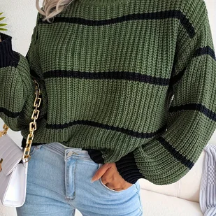 TEMU Sweter Damski z Wysokim Kołnierzem w Paski - Długi Rękaw, Luźny Krój, Kolorowy Blok, Czarno-Białe Pionowe Paski, Miękki i Przytulny na