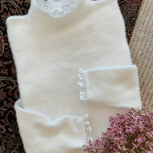 TEMU Sweter Damski z Wysokim Kołnierzykiem i Koronką - Miękka, Elastyczna Bluzka w Jednolitym Kolorze na Wiosnę & Jesień, Ręczne Pranie/Czyszczenie