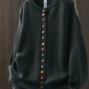 TEMU Sweter Kardigan Damski - Elegancki Czarny z Zapięciem na Guziki, Pranie w Praniu Maszynowym, Sweter na Jesień/Zimę do Codziennych i Formalnych