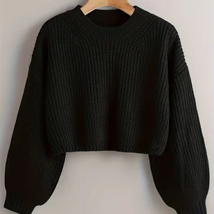 TEMU Sweter z długim rękawem, luźny top z długim rękawem, stylowa i wygodna dzianina, prosty i elegancki sweter, uniwersalny i szykowny top,